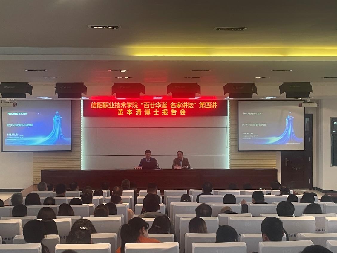 3月28日下午,东软教育科技集团副总裁、东软教育科技研究院院长董本清博士应邀到我校作了题为《数字化赋能职业教育》的报告会。学校党委书记郑洪涛,副校长王豪、郑延芳、李新毓、教务处处长余磊、党办主任张国锋、数信学院院长黄德成、党总支书记严正香等全校副科级以上干部及各教学院部基层教学组织负责人参加了报告会,会议由王豪副校长主持。