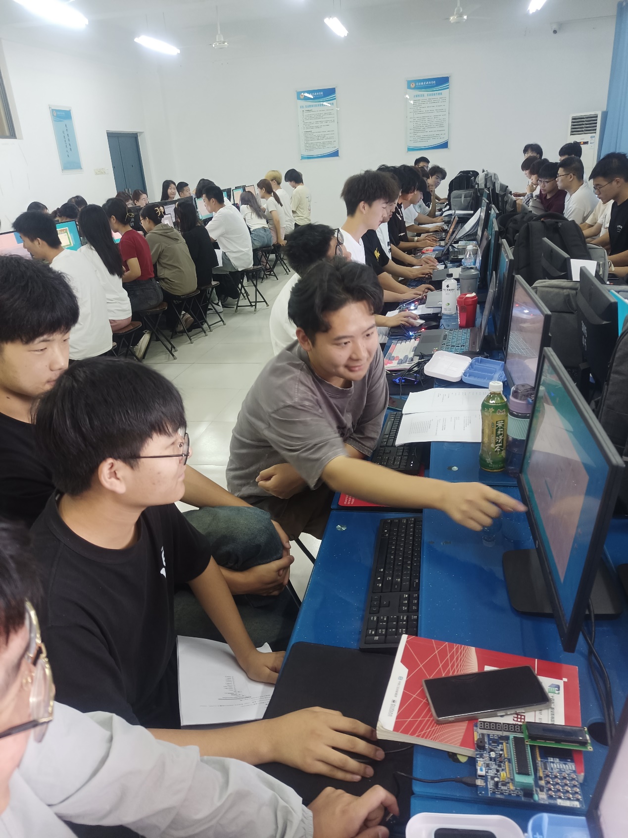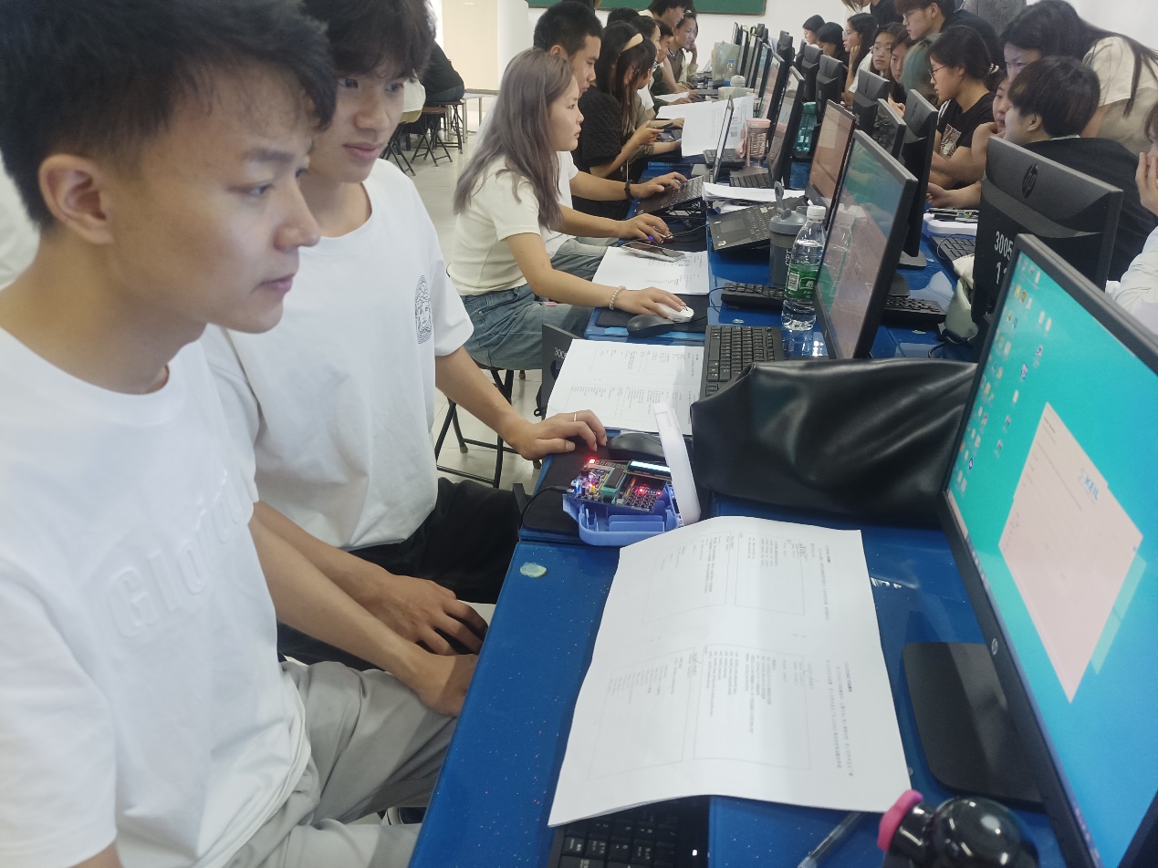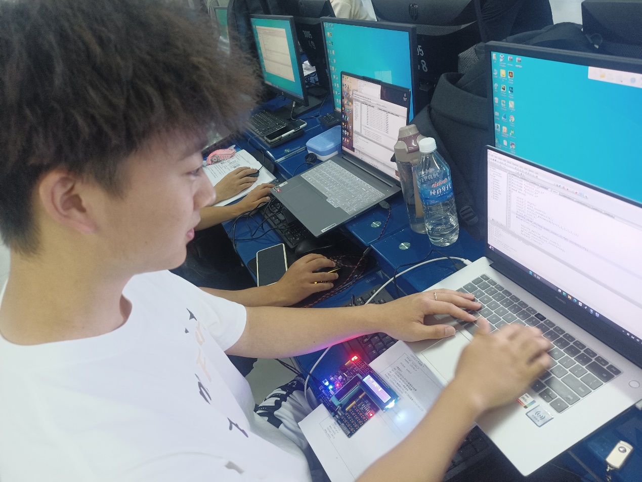本次综合实践共分为“LCD1602显示屏控制的艺术解码”、“矩阵键盘的智慧触碰实训”、“蜂鸣器的警醒之音探索”、“DIY功能的创意无限拓展”,以及“系统整合与报告撰写之完美收官”5个内容模块,分别由方定、秦亮亮、梅珀彰、何春、何鹏程5位老师完成相应模块的教学与指导,他们以匠心独运的教学,激发学生的潜能,引导学生在技术的天地里自由翱翔。