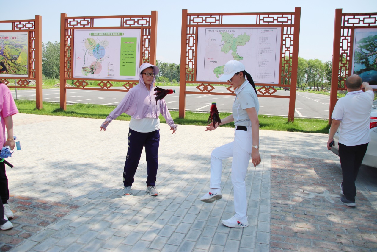 六月的豫南大地,草木盎然,碧波涟涟,老师们为平桥区新农村建设的巨大成就所吸引。团建活动分为“击鼓颠球”、“ 投掷小能手”、“ 智送鸡毛信”、“翻山越岭”等环节。在教练的指导下,老师们分成四组,开始了团结紧张、开心活泼的团建活动。活动现场一派热闹景象,大家脸上洋溢着快乐和幸福的笑容,老师们展现出的团结协作、携手共进、争先创优的精神风貌,为美丽的“十里水乡”增添了一道靓丽的风景。经裁判打分,活动评选出了冠军、亚军、季军等,黄新、裴波、黄德成、严正香为获奖团队颁发奖牌和奖品。活动最后,黄新主席、严正香等和老师们一起跳大绳、踢毽子,老师们优美的动作和高超的技巧赢得了大家阵阵热烈掌声。