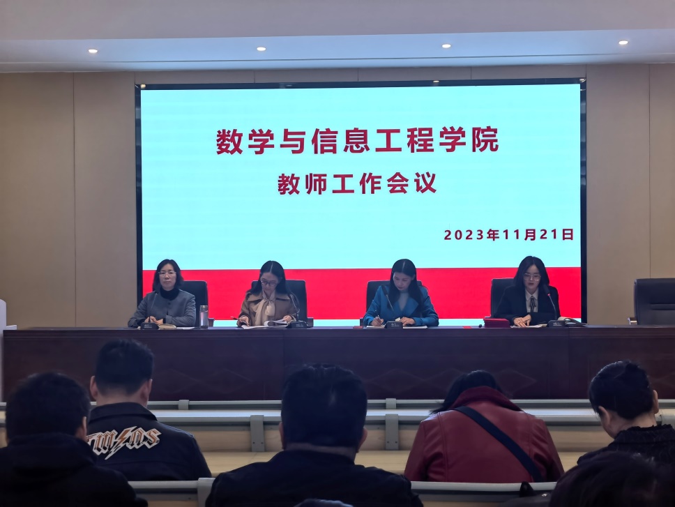 11月21日下午,数学与信息工程学院在实训楼1015教室召开全体教师工作会。会议由学院副书记湛宁主持,数信学院全体教师参加。