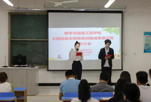 为总结工作成果,增强学生文明意识,营造文明和谐校园,5月16日下午,数信学院在计算机实训中心1014多媒体教室召开文明班级文明宿舍创建成果展示暨表彰大会。